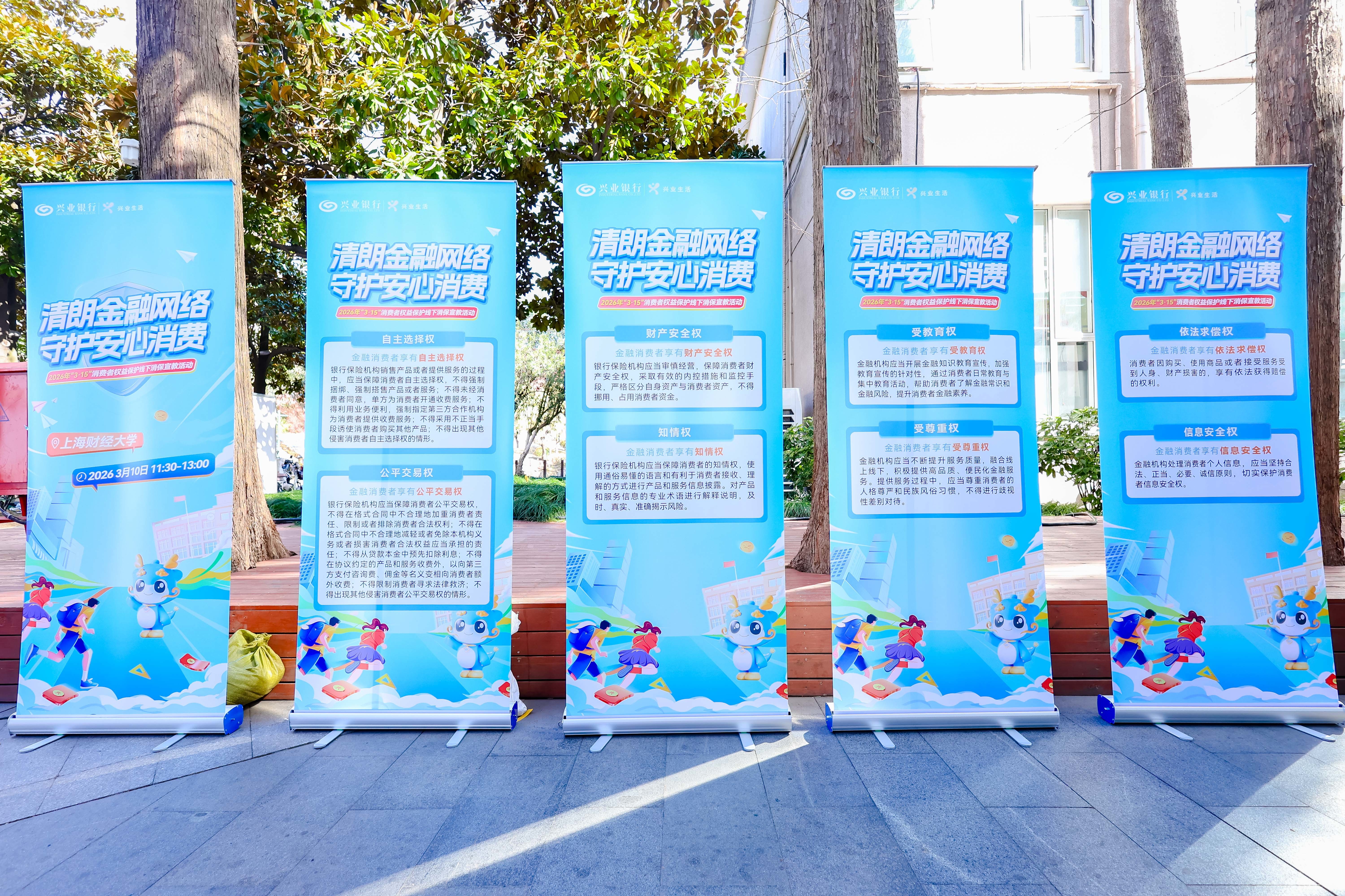近日,兴业银行信用卡中心携手上海财经大学(国定路校区)开展2026年“3·15”金融消费者权益保护教育宣传活动。本次活动以“清朗金融网络 守护安心消费”为主题,将金融消保知识融入文艺展演、趣味互动,为高校师生带来一场别开生面的“金融安全课”。