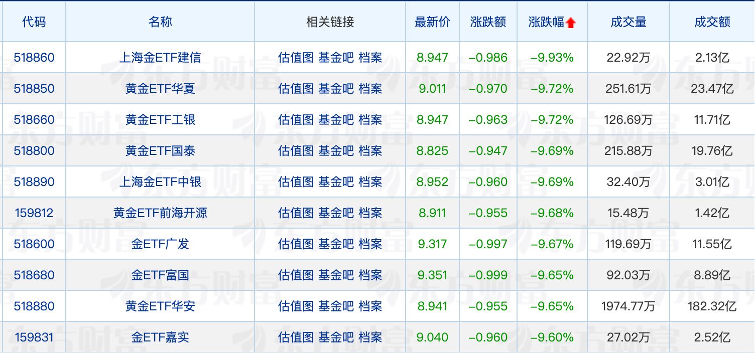 下跌方面,贵金属概念跌幅居前,赤峰黄金、四川黄金跌停,黄金相关ETF全线下挫,最大跌幅为9.93%。